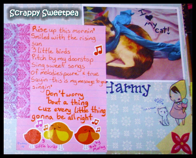 This is my other favourite page. I had been saving this image from an issue of Gothic Beauty, and when I mixed this dusty purple colour it just seemed to work perfectly with it. I added some red heart stickers to tie in with her outfit.