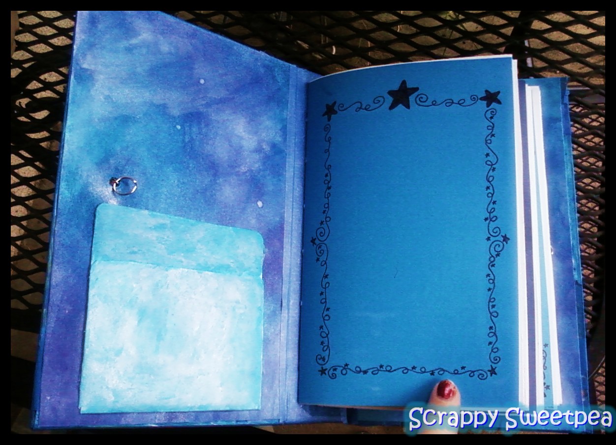 The book was originally a dull blue so I used some blue acrylic & shimmery watercolours to brighten it up